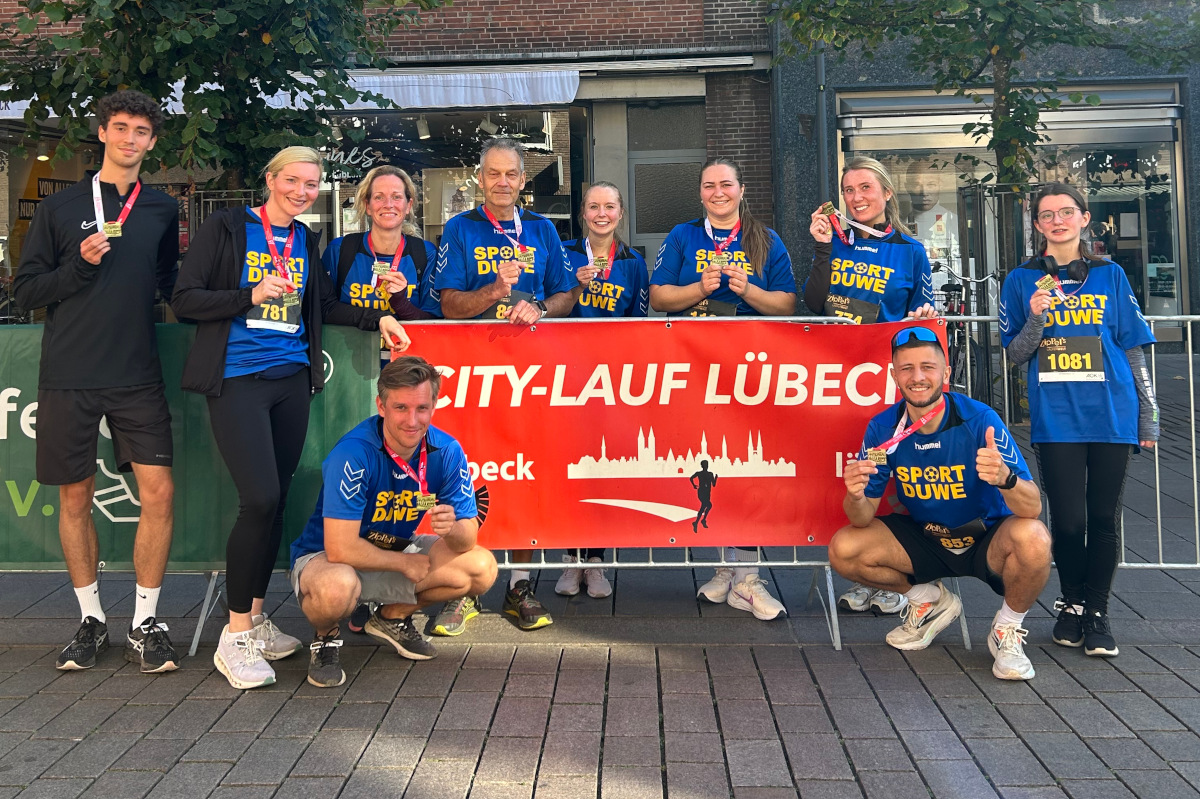 Lehrkräfte beim Lübecker Citylauf Nur einen Tag später bewiesen auch die Lehrerinnen und Lehrer des EBG ihre sportliche Ausdauer. Beim Lübecker Citylauf starteten gleich zwei Lehrerstaffeln à fünf Personen über je 5 km quer durch die historische Altstadt. Bei strahlendem Sonnenschein und unter lautstarker Unterstützung einiger EBG-Anhängerinnen und -Anhänger gingen Frau Hollatz, Frau Eulenberger, Frau Ternes, Frau Flammann, Frau Tuhcic, Herr Leußner und Herr Hering an den Start. Ein besonderer Dank gilt unserem Hausmeister Herrn Lietz, Leonard Heuschkel sowie der Tochter von Herrn Staudte, die kurzfristig eingesprungen sind und damit beide Staffeln vollständig gemacht haben.