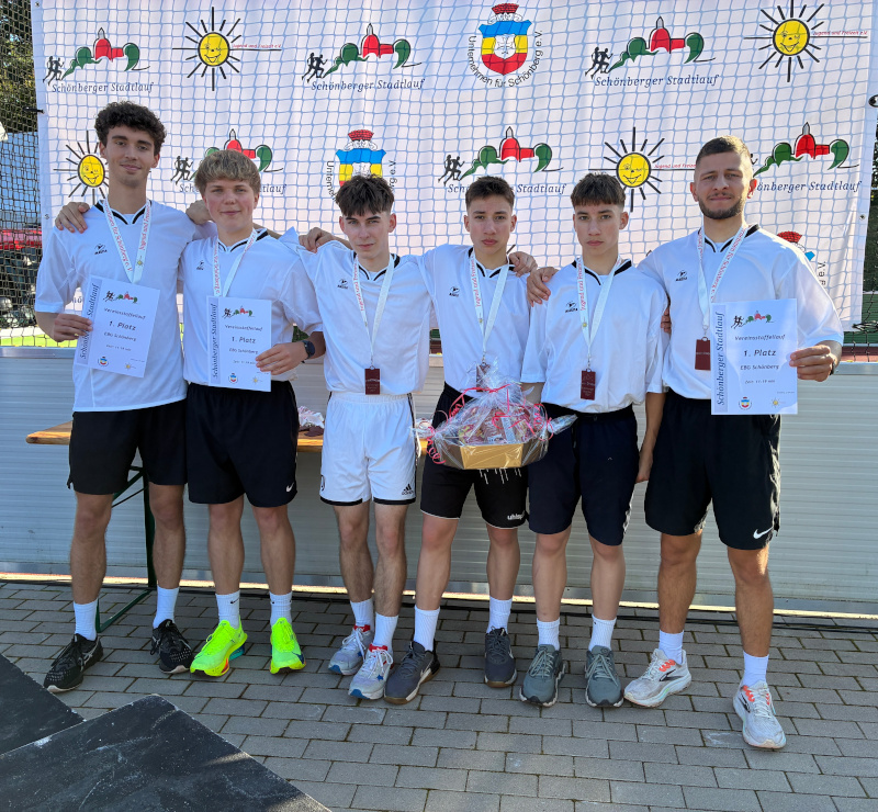 Erster Platz beim Schönberger Vereinsstaffellauf Am Samstag, den 27. September, nahm das EBG mit einer Schülerstaffel am Schönberger Vereinsstaffellauf teil. Über 10 × 400 Meter traten Yuma Bertz, Leonard Heuschkel, Julius Michalsky, Bela und Bjane Lockenvitz sowie Herr Hering gegen weitere Staffeln aus der Region an und sicherten sich mit einer starken Mannschaftsleistung den 1. Platz. Bei bestem Laufwetter herrschte eine tolle Atmosphäre auf dem Sportplatz. Ein herzlicher Dank geht an Jugend und Freizeit e.V. für die gelungene Organisation dieser Veranstaltung.