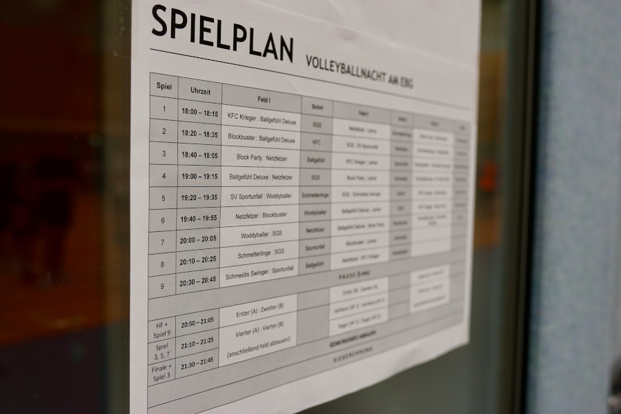 Am Freitag, den 07. November, fand die zweite Volleyballnacht des EBG in der Palmberghalle statt. Von 18 bis 22 Uhr duellierten sich insgesamt elf Mannschaften in spannenden und mitreißenden Begegnungen um den Titel.