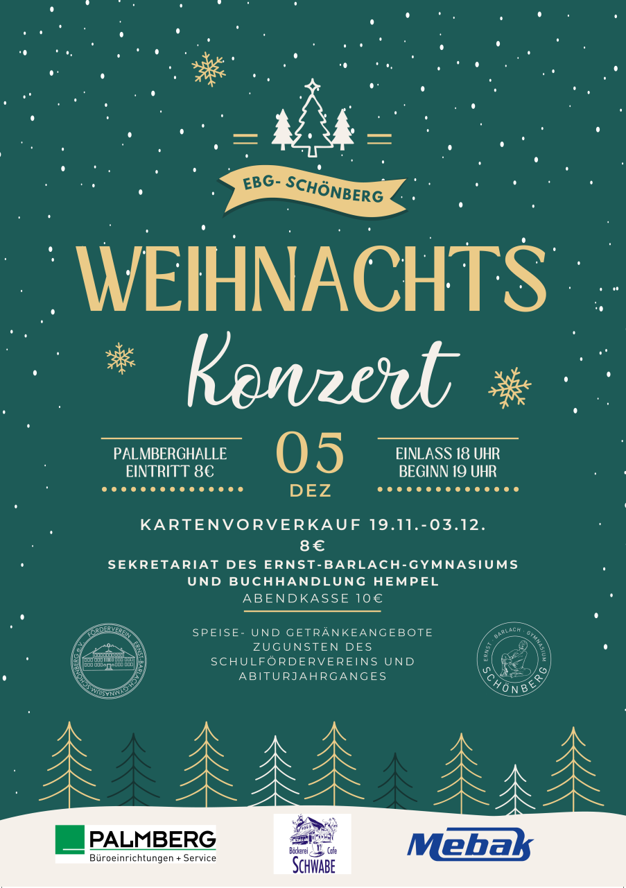 Das Ernst-Barlach-Gymnasium lädt herzlich ein zum diesjährigen Weihnachtskonzert am Freitag, den 5. Dezember 2025! Der Kartenvorverkauf ist eröffnet.